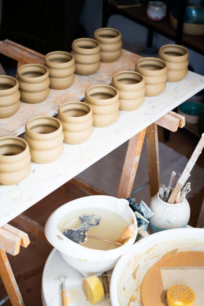 Doch bis eine Tasse fertig ist, braucht es Geduld. Nach dem Formen muss sie mehrere Tage trocknen, bevor sie zweimal gebrannt wird. Rund zwei Wochen dauert es, bis aus einem Klumpen Ton ein fertiges, alltagstaugliches Stück entsteht.