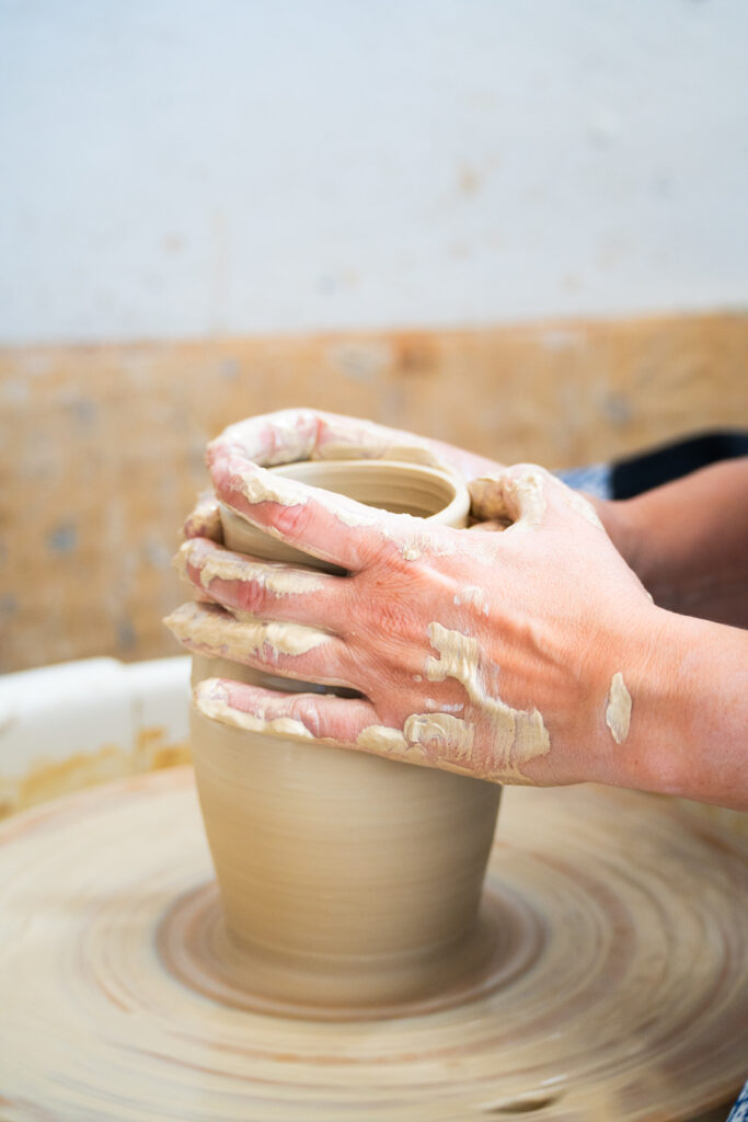 Da Cristina die Töpferei nur nebenberuflich betreibt, bietet sie kleine Kurse an – die sogenannten Mädelsabende. In drei Stunden können Frauen in geselliger Runde erste Erfahrungen mit Ton sammeln. Die Termine spricht sie individuell mit den Teilnehmerinnen ab. Wie sie den Besuch in ihrer Werkstatt beschreibt? „Meditativ-gesellig würde ich sagen. Man kann hier wunderbar abschalten, aber gleichzeitig eine schöne Zeit mit Freundinnen verbringen.“