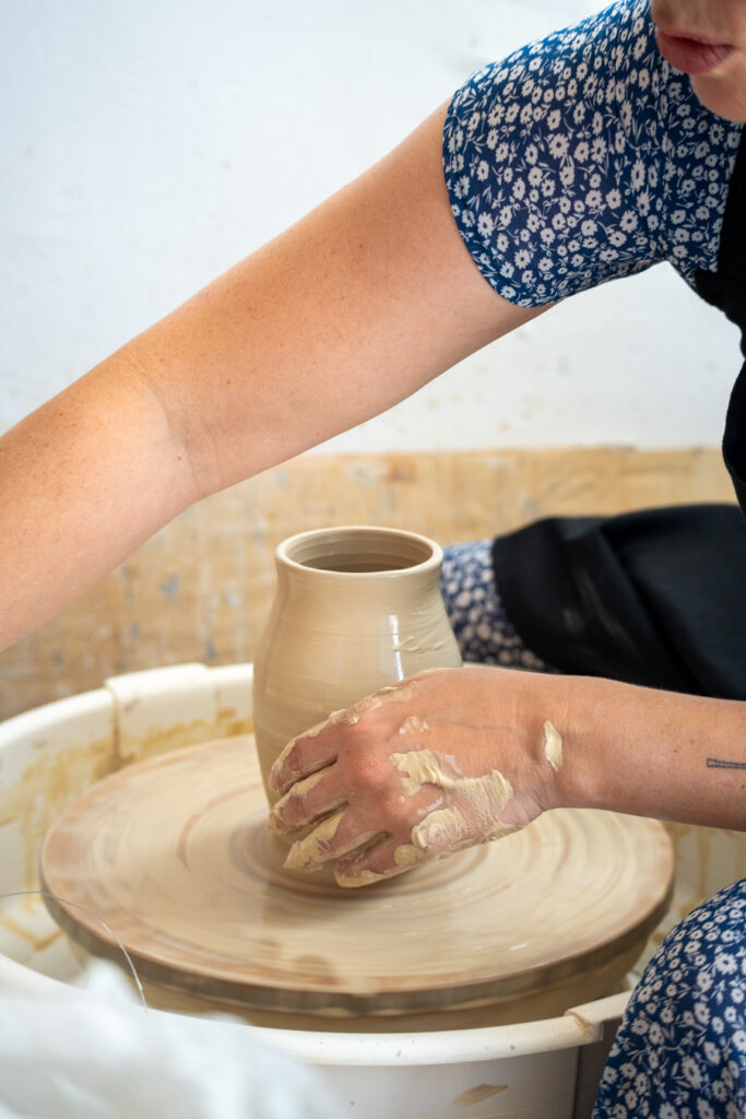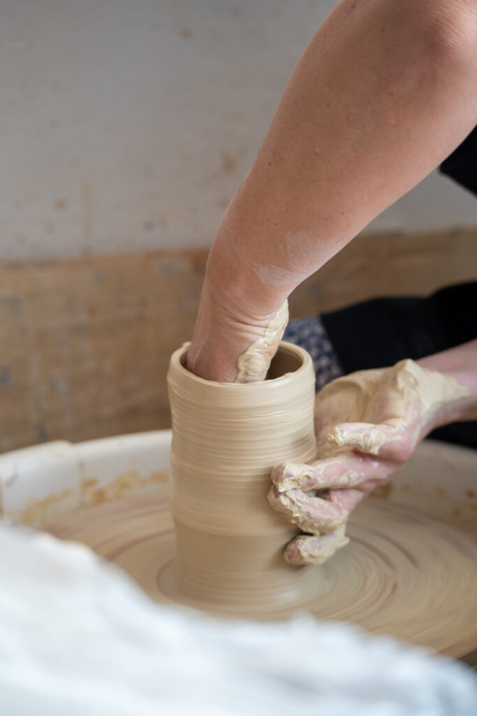 Im Gespräch erzählt sie mir, dass Töpfern für sie vor allem eins ist: ein Ausgleich zum Alltag – eine Möglichkeit, loszulassen und sich künstlerisch zu entfalten.