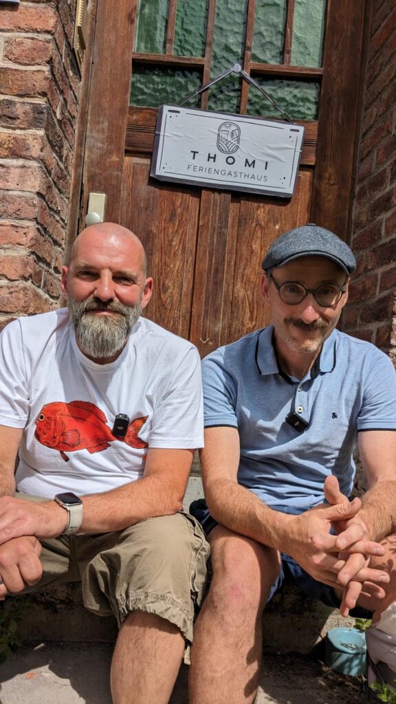 Natürlich benötigt ein Feriengasthaus viel Zeit und Mühe. Die beiden teilen sich die Aufgabenbereiche ein bisschen auf und machen das Ganze mit viel Freude und Leidenschaft, das merkt man. Micha ist eher der Kopf hinter der Hygiene und all dem, was mit Bewirtung zu tun hat. So hat er sich z. B. um die optimalen Matratzen für die Gästebetten gekümmert. Der Kontakt mit den Kunden und die Bewirtung machen ihm sehr viel Spaß, erzählt mir Thorsten. Er ist eher der kreative Part, der sich um das Visuelle und die Gestaltung kümmert.